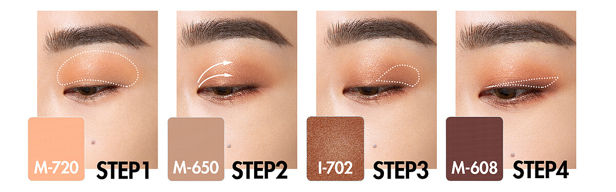 STEP 3:眼尾處靠近睫毛根部,使用閃耀光澤的金棕色M-702,加深輪廓印象。