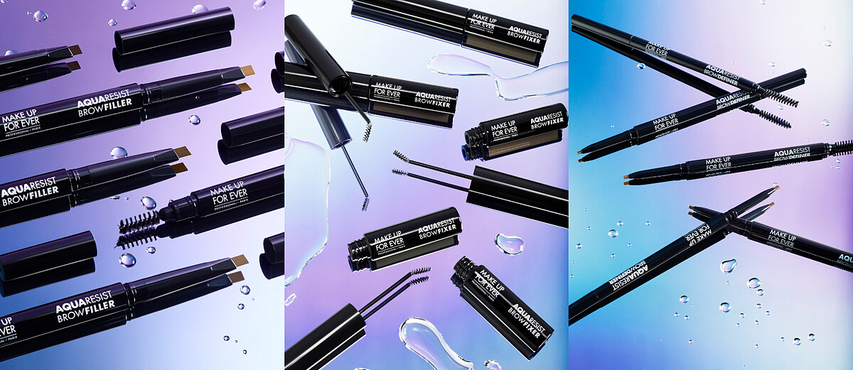 MAKE UP FOR EVER 「AQUA 24H超防水眉型系列」由左至右: AQUA 24H超防水斜角塑眉筆、AQUA 24H超防水雕染塑眉膏、AQUA 24H超防水精細塑眉筆