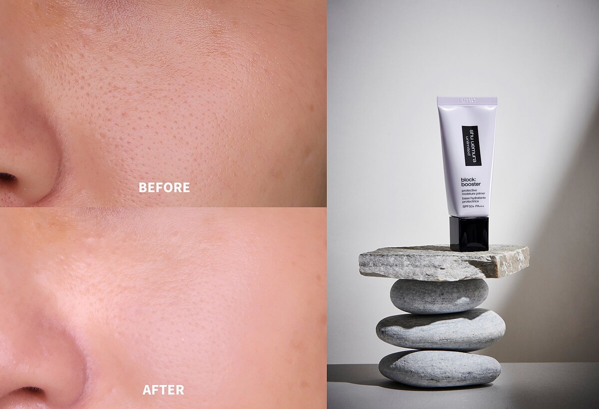 這次的妝前因為添加了感光粉末,還能夠讓在毛孔凹洞反射光線,讓粗大的毛孔瞬間變成超美的光澤平滑肌!視訊的時候不用再額外套濾鏡,直接擦上植村秀無極限保濕妝前乳就OK!