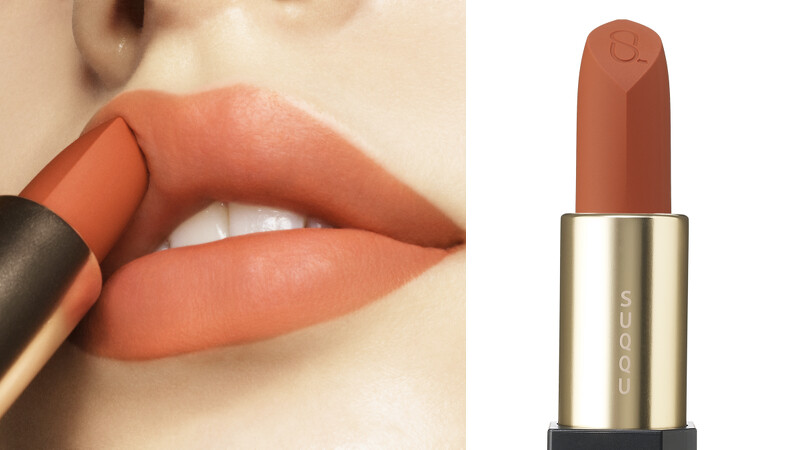 SUQQU晶采艷澤口紅也有這個顏色,當時造成大轟動!獻給鐵粉們全新質地的選擇,展現女性溫暖柔和的個性中,帶著堅定力量的磚紅色。