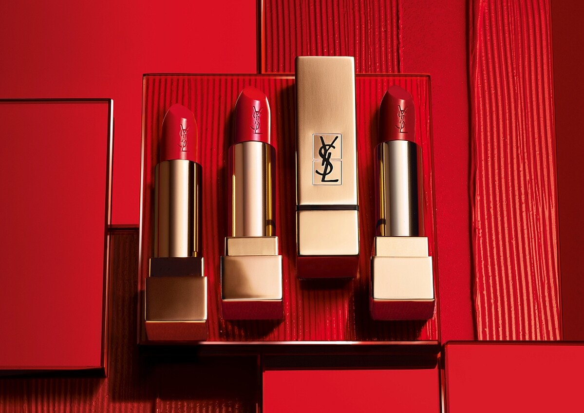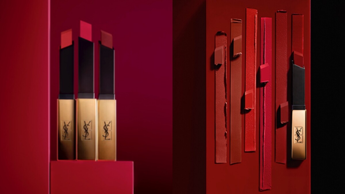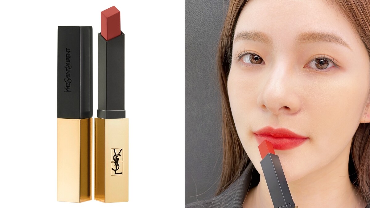 YSL「小金條」奢華緞面絲絨唇膏在2021年秋冬推出全新「極致誘惑棕紅系列」,共有4個新色(#32欲滴巧棕、#33情誘楓橘、#416慾望柿紅、#1966魅惑棕紅)加2個原有色(#21熾愛界線、#28誘惑橙市),調色更符合亞洲人膚色,塗抹瞬間更加顯白,搭配高訂麂皮革霧光質地,刷新棕紅新境界。