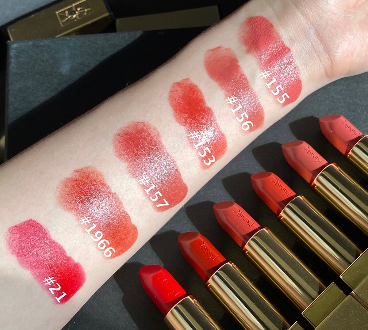 全新六色為:NO 21勾心野莓、NO 1966熾熱玫瑰、NO 153甜蜜陷阱、NO 155 無邪嫩粉、NO 156索愛烈焰、NO 157蜜桃成熟。