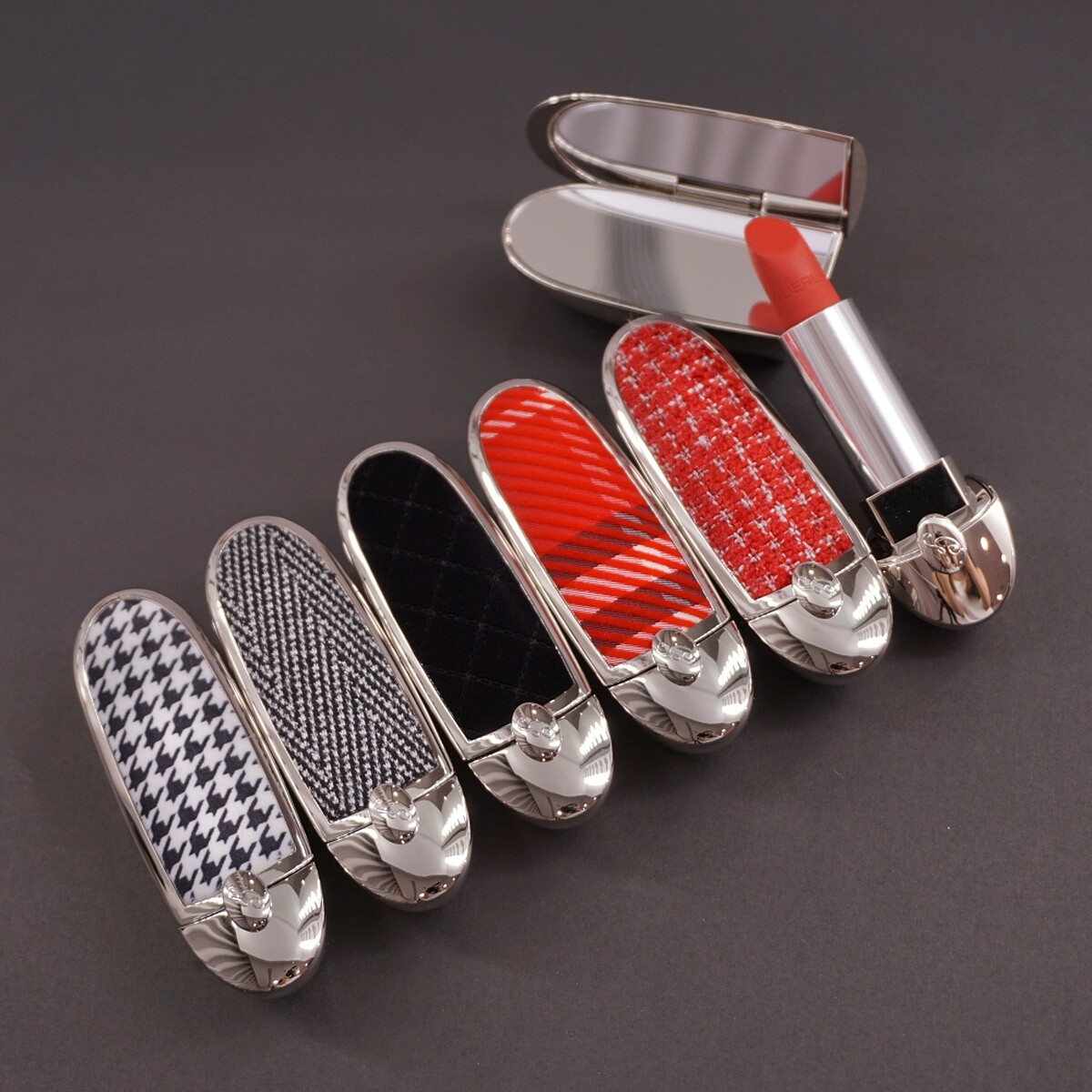 唇膏外殼由再生物料改造成,首次以布料做為彩殼設計的元素,包括經典方格紋、絲絨千鳥格、絕對紅絲絨、氣質粗花呢、率性V織紋、闇黑絲絨六款。