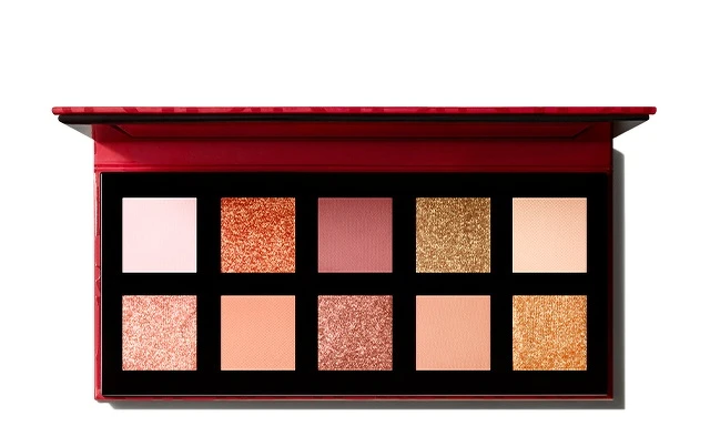 想要替妝容打造立體的光影感,收下這盤準沒錯,香檳裸粉、米金色、蜜桃粉橘搭配古銅棕,包辦打亮、腮紅到Bronzer。