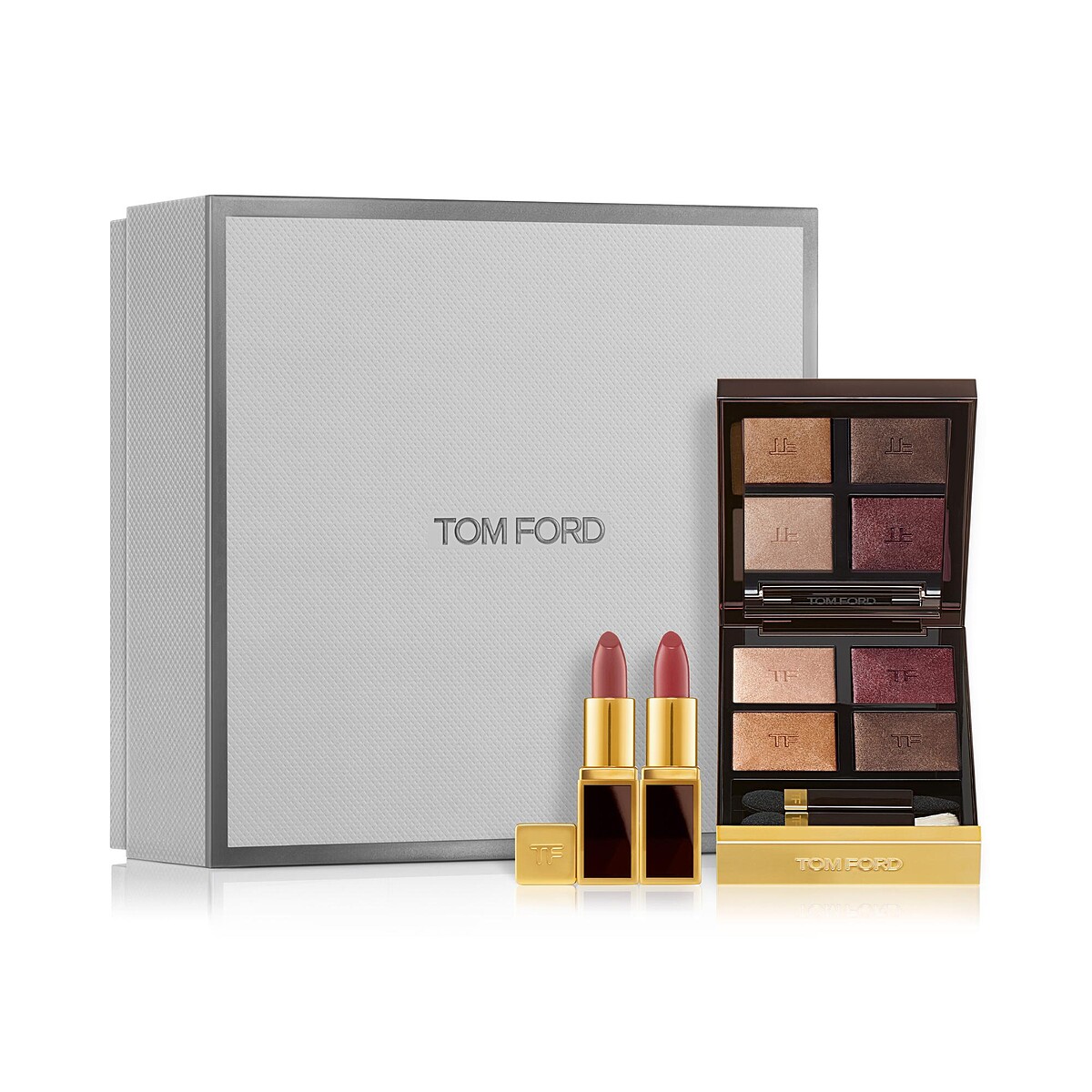 四色眼影是Tom Ford必收的彩妝單品,2021年驚喜獻上只有禮盒限定、單買買不到的#COGNAC ROSE眼影組,一盤囊括四款不同細緻閃耀質地,從絕美夕陽香檳到百搭大地色以及精緻莓果色一應俱全,並搭配TOM FORD經典唇彩#CASABLANCA、#FASCINATOR,絕佳眼影和最適合的唇彩搭配,不管甚麼場合都適用。