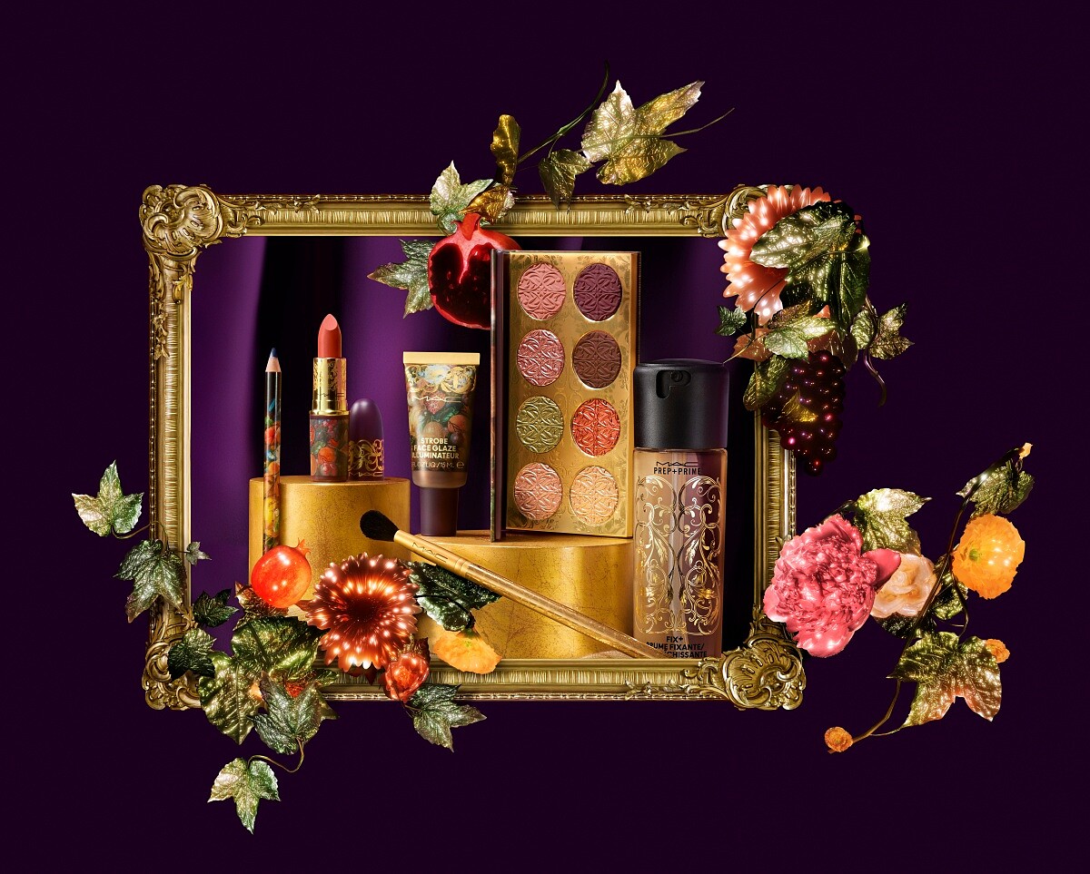 運用奢華的復古金黃雕刻打造包裝,並搭配浪漫多彩的秋季暖色系,帶來充滿華麗感的大藝術家禁果誘色系,全系列包含唇膏、眼彩盤、眼彩筆、波光打亮乳、妝前活力水噴霧以及#224專業彩妝刷。