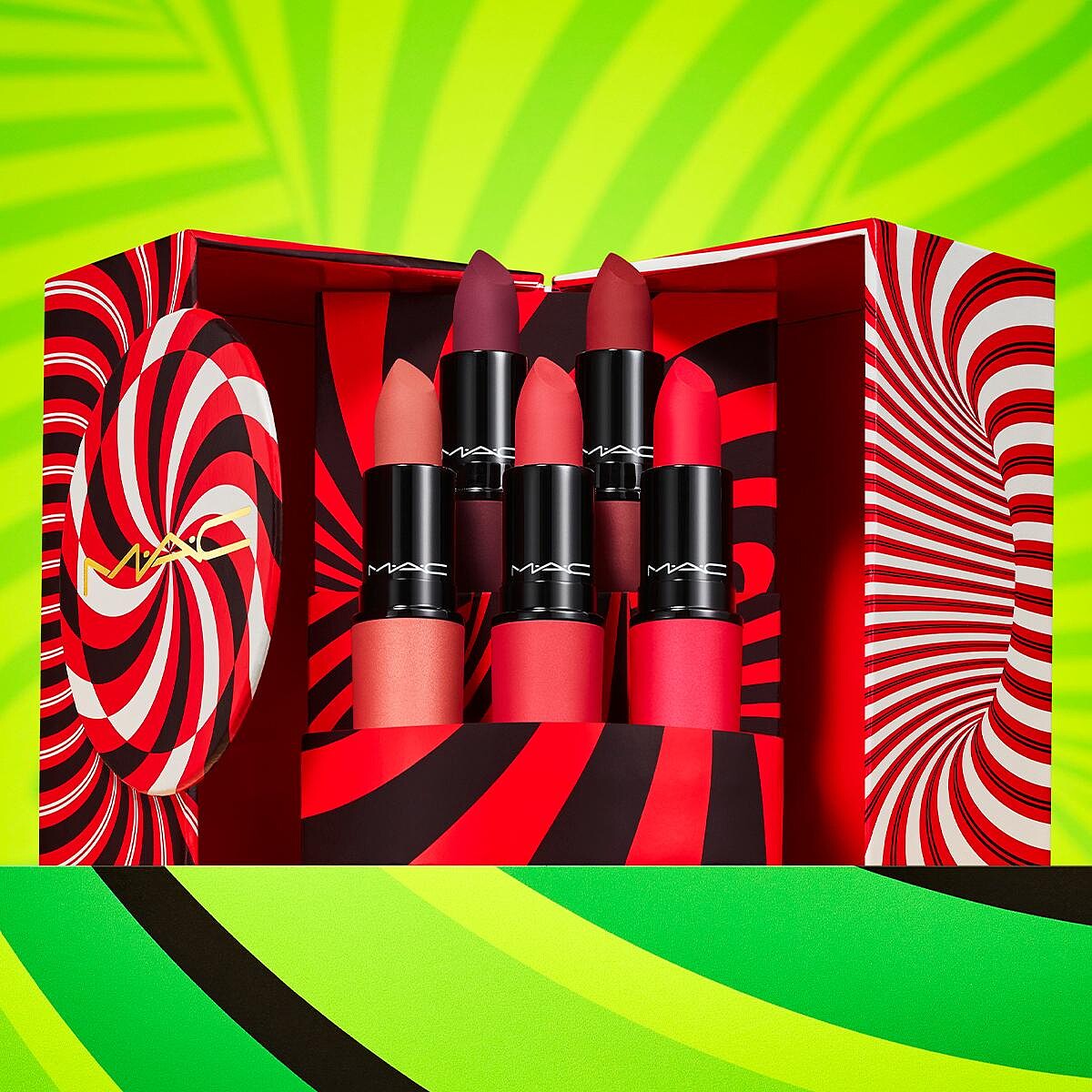蒐羅了MAC絲柔粉霧唇膏5款限量新色,加上童趣可愛的禮盒,收到絕對心花開。
