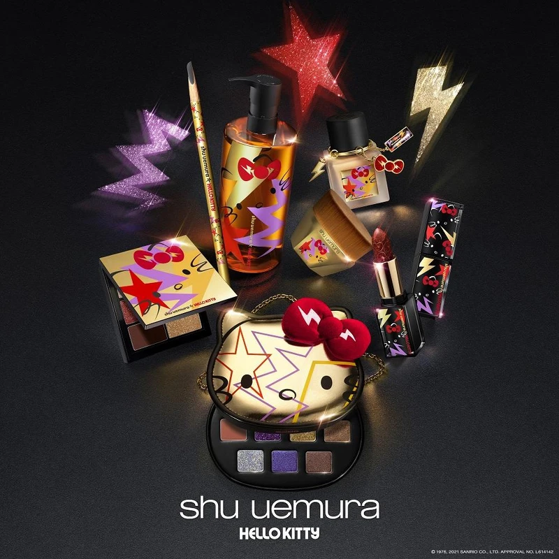 近年來聖誕植村秀都會推出聯名彩妝,像事去年的海賊王,今年則是與Hello Kitty推出聯名,有別以往給人較甜美的形象,以「搖滾潮趴」為概念,打造Hello Kitty又酷又甜的形象。 眼影的部分,分別推出了10色、6色的眼影盤。