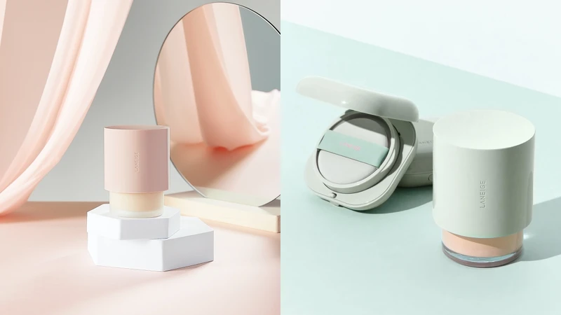 蘭芝既去年上市就造成熱銷的小薄荷、小粉紅氣墊後,2022年1月再推出NEO型塑氣墊系列的姐妹作,也就是同為NEO型塑系列的霧感、光感粉底液。