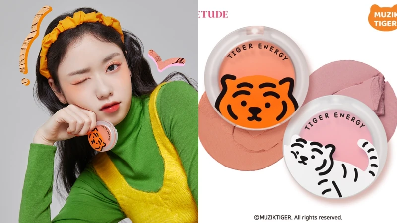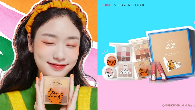 MUZIKTIGER是來自韓國的文創品牌,深受韓國年輕族群的喜愛,近期甚至在COEX前有大型的玩偶呢!2022與Etude推出聯名彩妝,主題是來自兩隻不同個性的虎虎,充滿活力的橘色「好有虎氣」、以及白色懶散可愛的「迷迷虎虎」,彩妝色澤則以水蜜桃色系和迷濛的紫羅蘭色系做區分,除此之外敏感肌適用的純晶系列也加入聯名行列。
