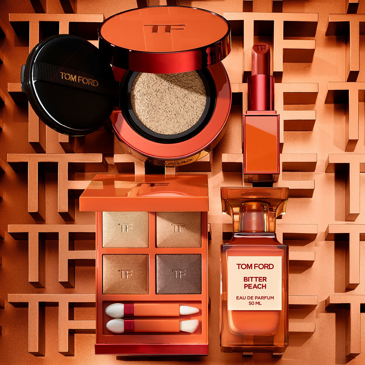 BITTER PEACH蜜桃狂想以捕捉蜜桃果肉最甜嫩多汁的熟成美好時刻為靈感,散發象徵誘惑與歡愉的蜜桃香氣,令人上癮的香氣擄獲人心,2022全新推出各種容量的香氣,更同步上市50ML+10ML極限量禮盒,是年節送禮的好選擇。此外也同步推出限定版彩妝,包裝全部換上了象徵好運的蜜桃橘色,眼影盤和唇膏更是全新限定色選,其中最吸睛的就是蜜桃狂想限定版氣墊粉餅盒組,結合了最上鏡奢華時尚氣墊蕊,輕拍上臉打造高級的開運光澤。