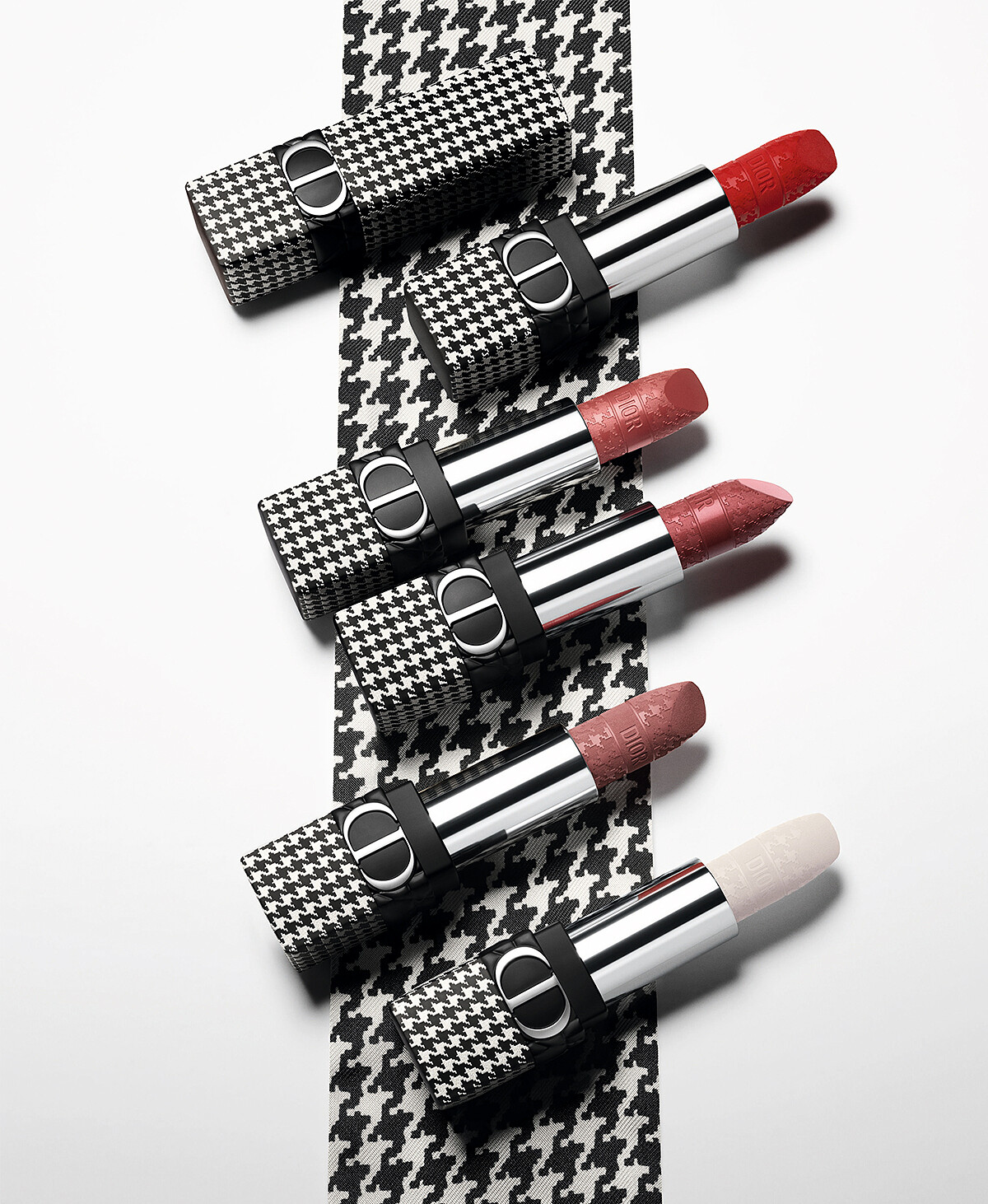 DIOR限量圖騰系列今年也首度加入明星商品「藍星唇膏」,貫徹「訂製彩妝」的精神,不只外殼換上雍容華貴又時髦的黑白千鳥格紋,唇膏蕊心也同樣有著千鳥格紋浮雕,是一款前所未見的頂級精品唇膏!M編看到真的超級驚喜~~唇膏管身就像穿著優雅千鳥格大衣,還繫上點綴銀色CD LOGO的腰帶,連細節都完美呈現「NEW LOOK」極致的高訂時尚!凝聚DIOR跨越百年的經典、宛如藝術品般的明星唇膏,光看外觀已經迫不及待想入手了啦!