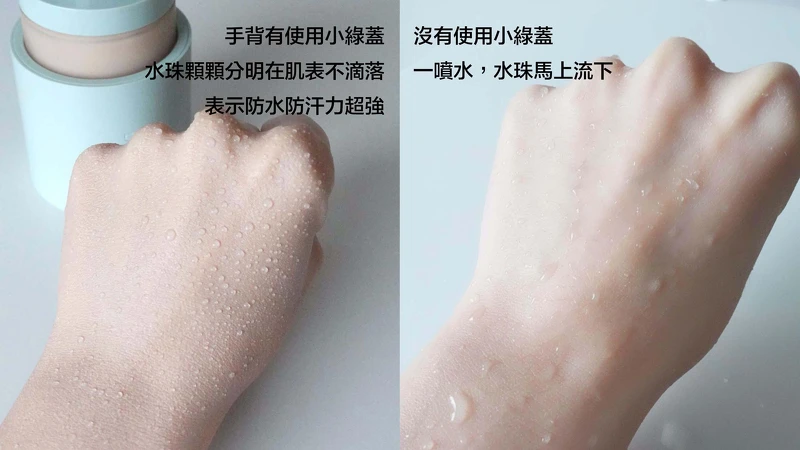 M編實測,在塗抹小綠蓋的手背大量噴水和精華油後,粉底依舊耐油耐汗的堅強實力已超越滿分等級。所以不管是悶熱氣溫下戴著口罩、戶外運動大爆汗,完全免擔心,用過就能秒懂網友瘋傳連下水都不脫妝都是真的!真正不沾口罩只有它!相信大家心中已有答案!
