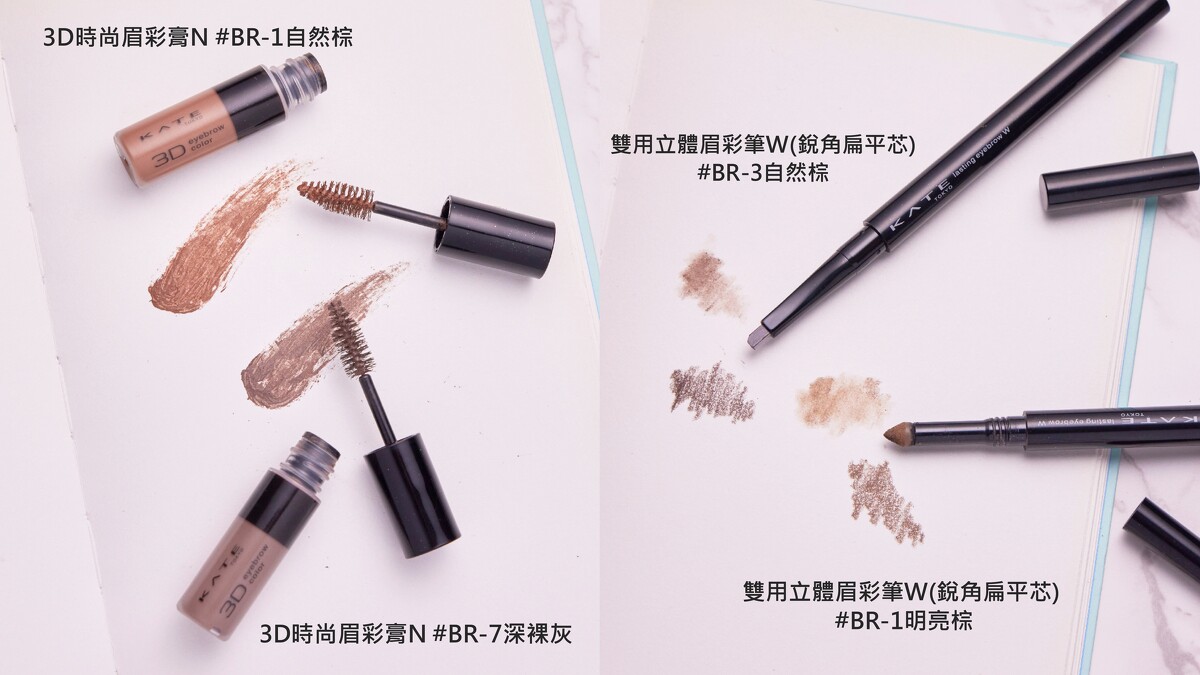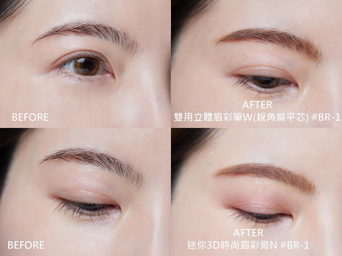 M編選用雙用立體眉彩筆W(銳角扁平芯)#BR-1明亮棕+3D時尚眉彩膏N #BR-1自然棕。
