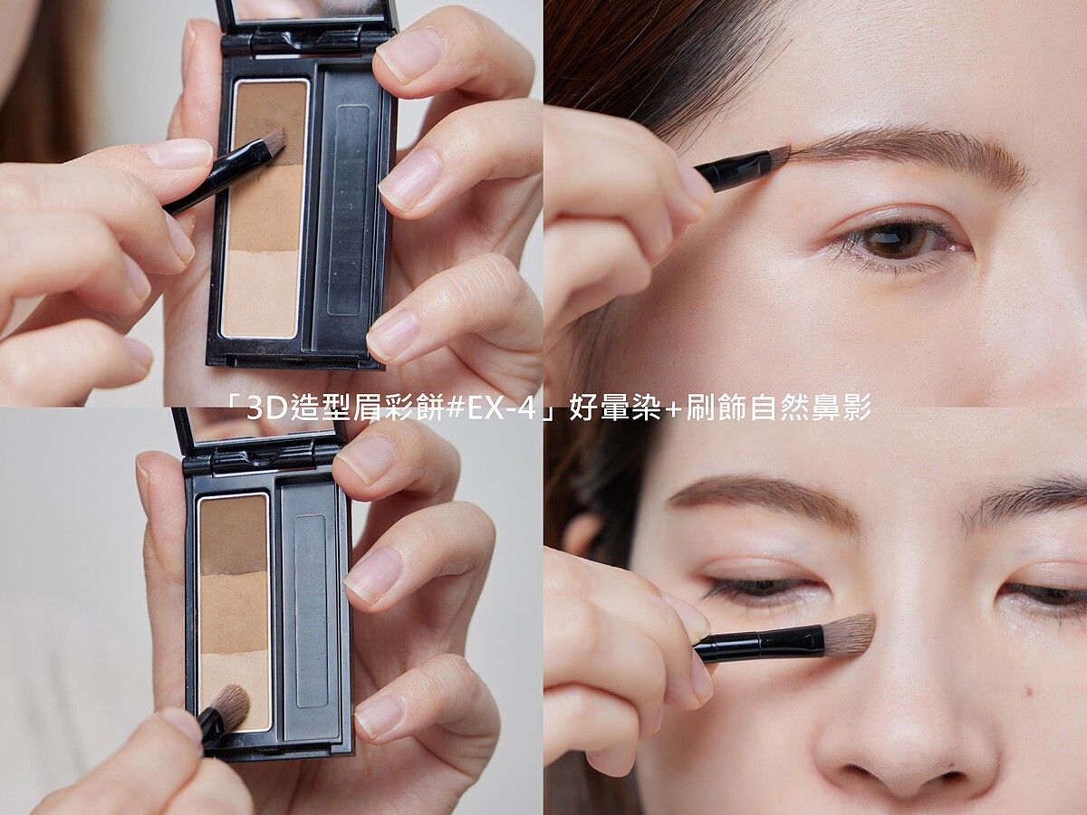 除了眉彩筆+眉彩膏一起用,再加上NO.1眉彩霸主「3D造型眉彩餅」,眉粧更細緻!漸層三色好暈染+刷飾自然鼻影,絕對是化妝包必備,用到空空賞的代表。