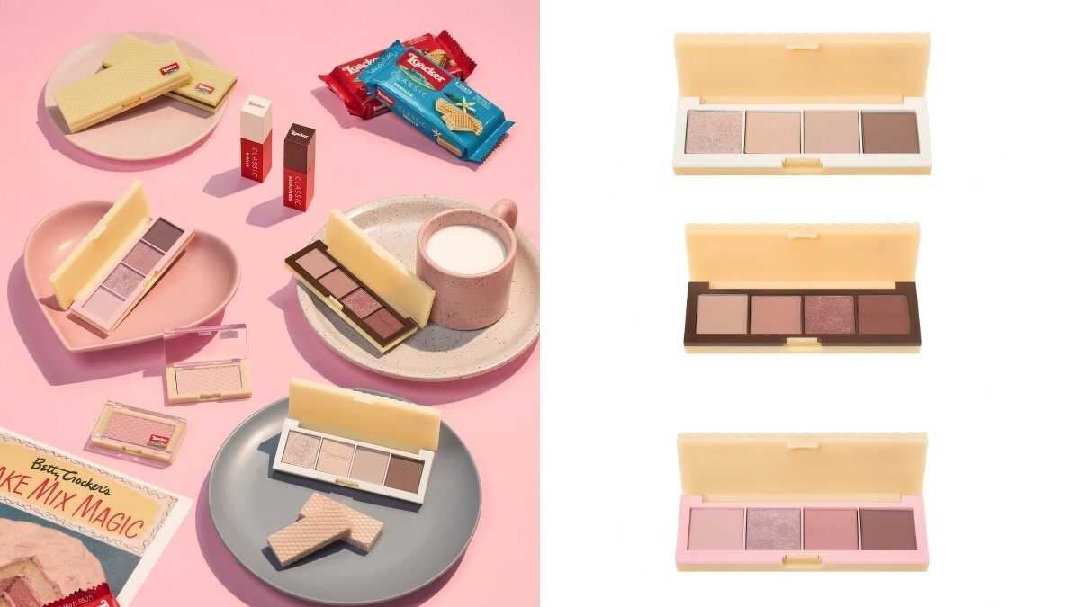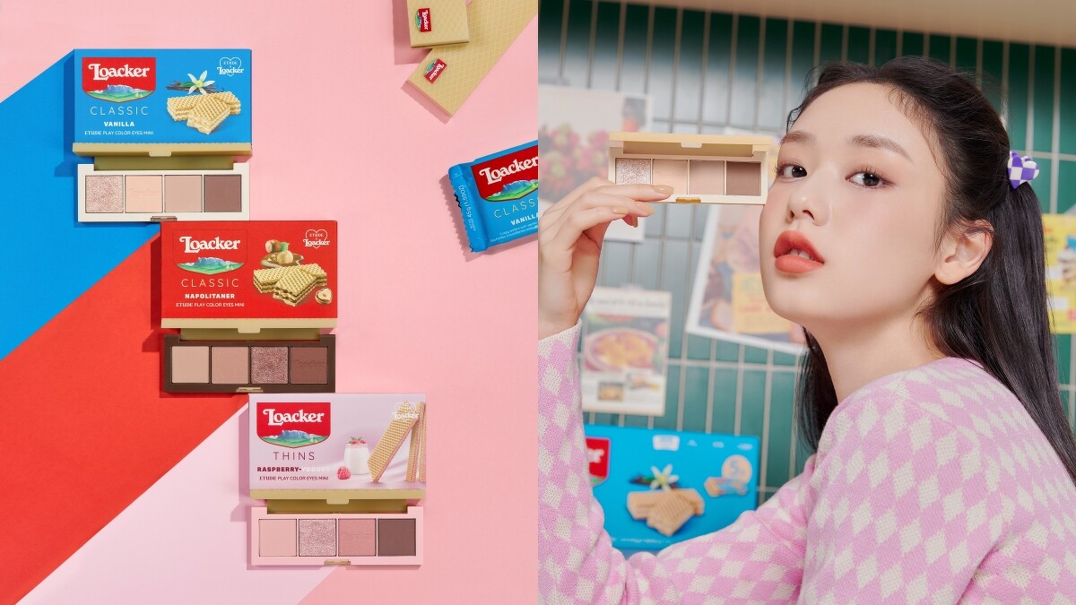 既新年的無職Tiger聯名後,屬於情人節的2月份,Etude 和義大利威化巧克力餅乾品牌Loacker跨界合作推出一系列限定彩妝,其中以3種不同的餅乾口味,推出3款不同色系的4色眼彩盤,就連包裝也高度還原餅乾包裝。