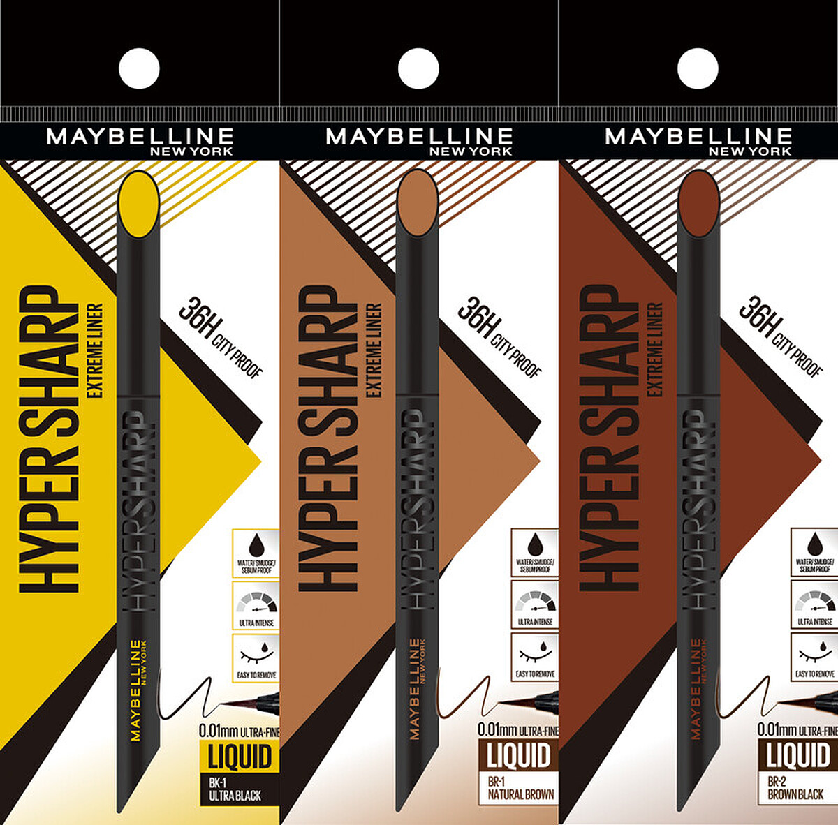 媚比琳的小金蓋眼線液自上市後一直深受喜愛,今年推出全新升級版的「小黑霸」36H極限持久激細抗暈眼線液。針對亞洲濕悶氣候全新研發持久顯色成膜科技,畫上眼皮的同時瞬間形成持久顯色薄膜,如同眼線上加了一層隱形防護罩,持久力更優秀。一次推出3款實用色系,包含極致黑、拿鐵棕、皮革棕,加上網友最愛0.01mm超激細筆尖,細細勾勒出想要的妝效不失手。