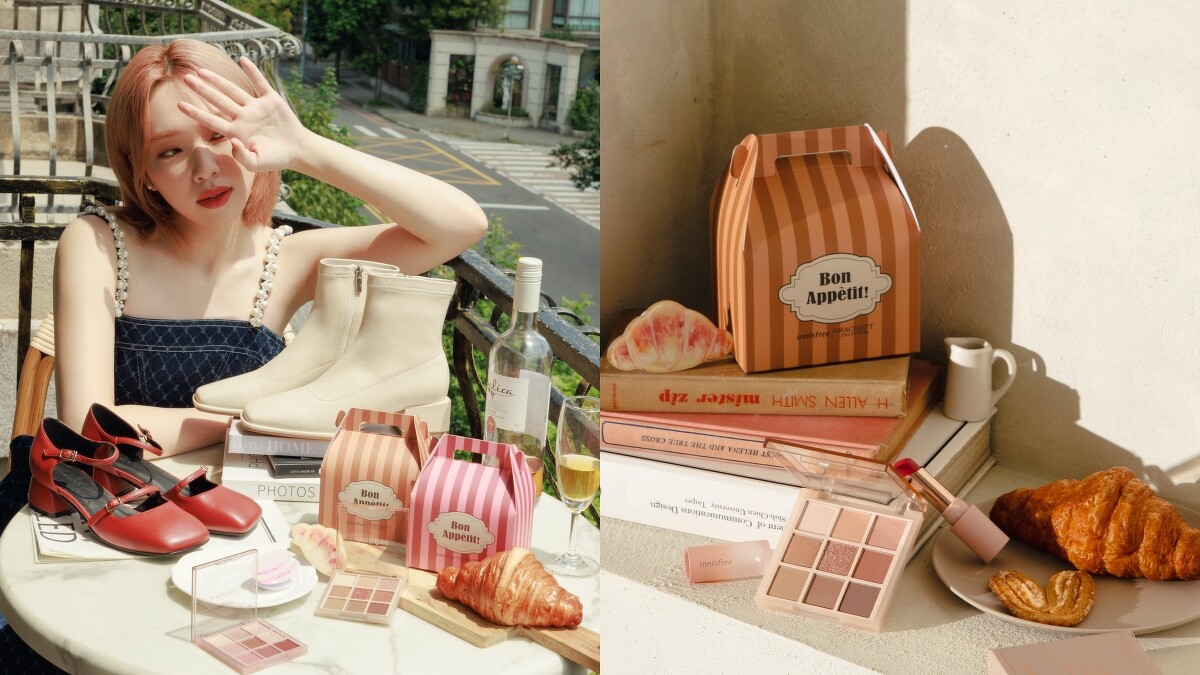 為了慶祝上市,innifree這次攜手鞋包品牌Grace Gift共同詮釋彩妝與穿搭的完美配搭,聯手打造以繽紛甜點餐盒為概念的「限量法式午茶彩妝組」。9/1起,只要在innisfree購買任一九宮格眼影盤,搭配任一怦然空氣感唇彩,就贈送限量innisfree x GraceGift 聯名手機支架及繽紛小餐盒包裝,共有法式可頌、法式馬卡龍2款可供選擇。