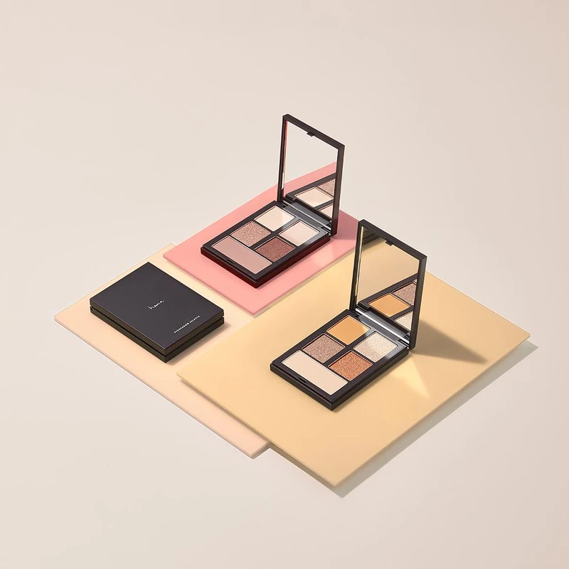 包裝保留環保、易攜和輕巧的紙盤包裝,一盤涵蓋霧面、珠光、亮片三質地,柔軟沙岸是日常暖調的大地色系;蜜漬玫瑰則是甜美、女人味的豆沙、紫棕色系,眼影中也添加了植物性角鯊烷、摩洛哥堅果油、荷荷芭油、玻尿酸等保濕萃取,使粉質更細膩、服貼,延展度更升級。