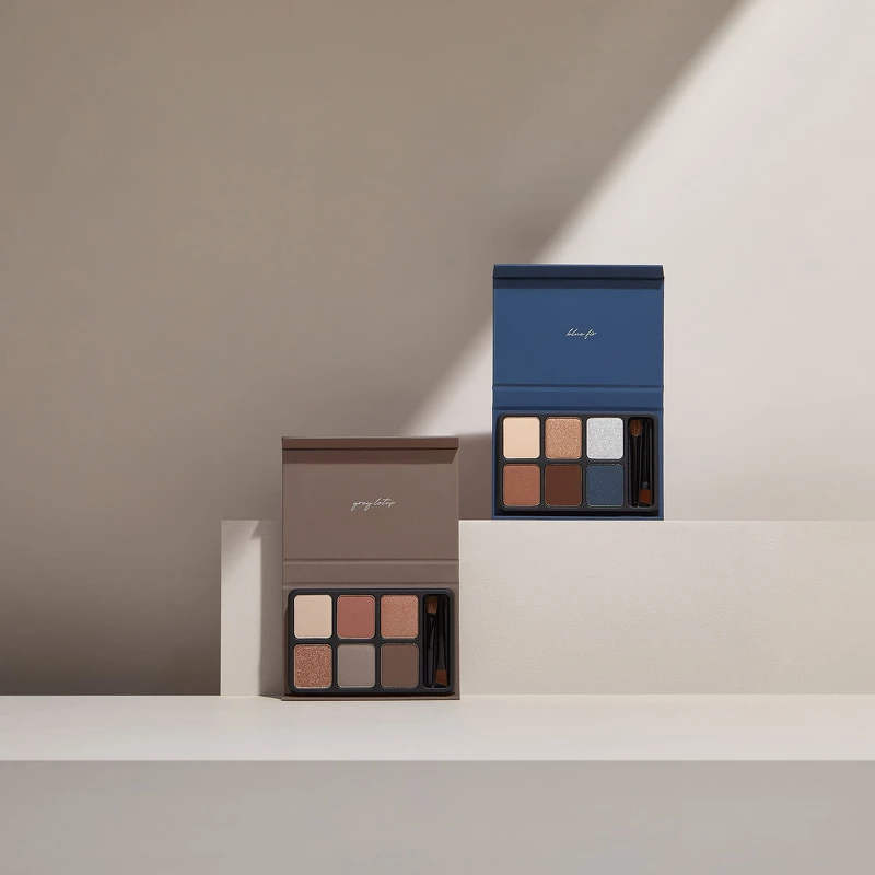 heme六色眼影盤再推出新色,目前已經來到了16盤,可以說是開架眼影盤中色號最豐富的品牌了。這次新色以「神秘夏夜花園」為主題,運用輕煙灰粉、濃夜藍棕色調,打造新色「灰荷 Grey lotus」、「青杉 Blue fir」。
