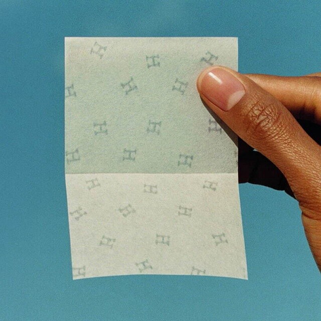 每一張吸油面紙上均有小巧的H圖案浮水印,讓人聯想起隨風飄揚的蒲公英絨毛。同時,吸油面紙精緻地包裝在橘盒內,便於隨身攜帶。