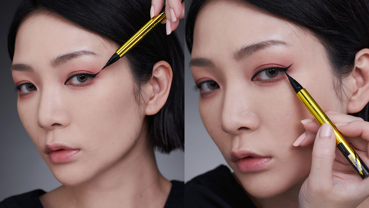 都要全面勾人了,眼線不要客氣直接飆出去!少女人妻分享超實用的眼線小技巧:用超激細抗暈眼線液抗手震版黑色,先往後拉長眼尾約1公分,接著往回勾出nike 弧形,最後填滿小空隙,超吸睛的狐狸眼馬上完成!