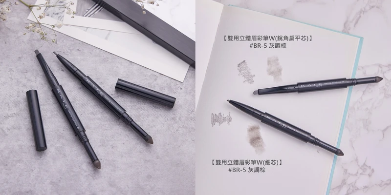 手殘人M編大推KATE超人氣的「雙用立體眉彩筆W(銳角扁平芯/細芯)」,這次推出新色#BR-5 灰調棕,特別適合黑髮、深色髮色、灰調系髮色。