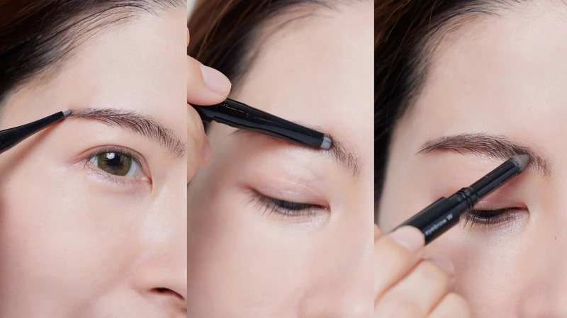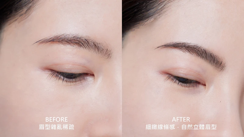 眉筆+眉粉棒的雙頭設計,一支搞定眉粧的自然線條與暈染,而且持久不易掉色,粗細皆自在描繪。眉筆分為「銳角扁平芯」及「細芯」兩款,非常簡單上手,大家依照自己的使用習慣挑選即可。