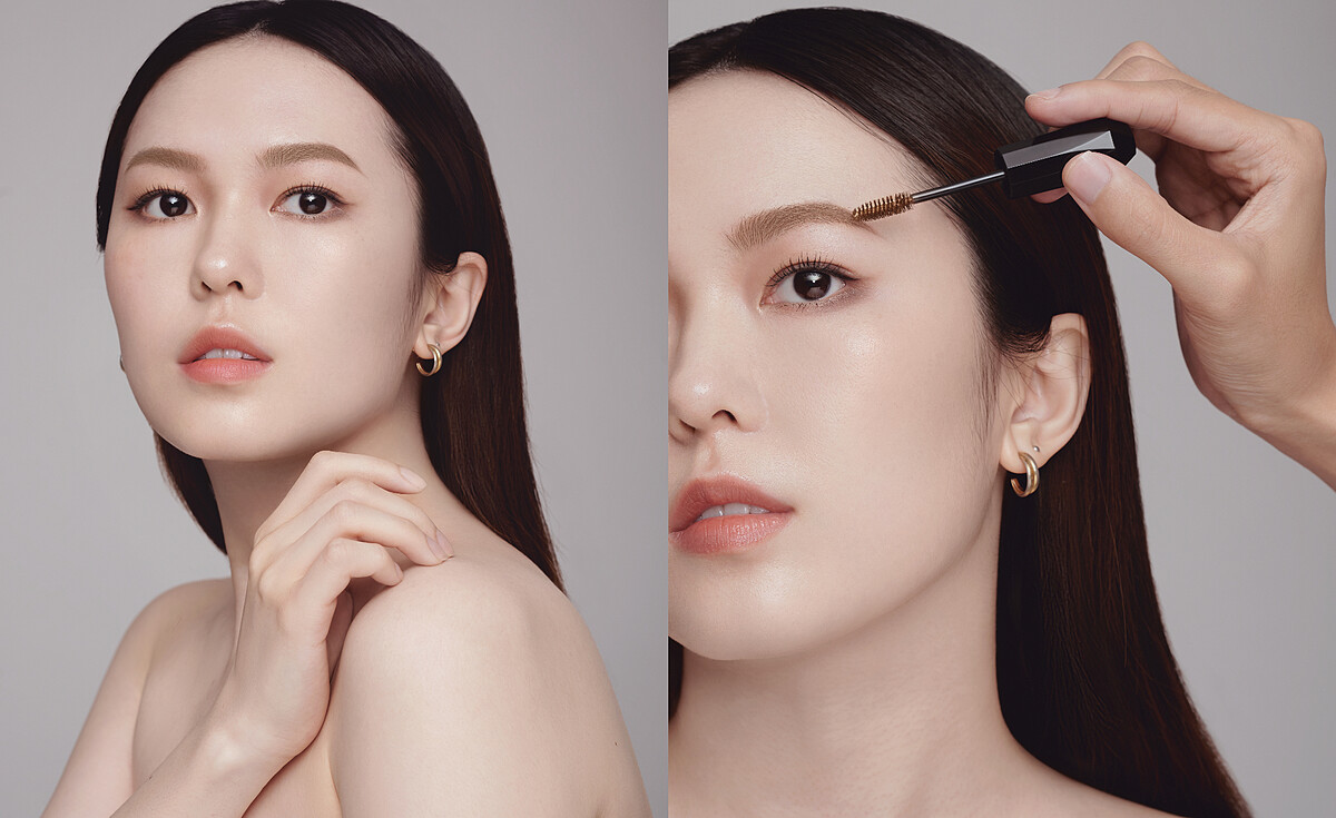 建議先用眉筆輕繪出自然眉型,再用眉彩餅填補空隙、將邊界線條柔化;最後使用帶有些許冷灰色調的霧灰棕色眉彩膏,使整體妝感視覺更加輕盈、五官輪廓自然浮現,柔和五官,讓人更優雅好親近。