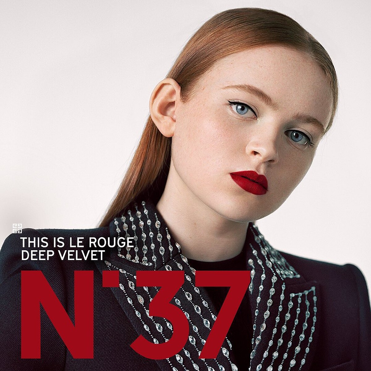 Sadie曾為Givenchy拍攝唇膏廣形象廣告,鮮豔的紅唇褪去了劇中的稚氣,替她增添了不少成熟的女人味。平日拍攝時,化妝師也時常會利用鮮豔的紅唇替她增加氣場,讓整個人看起來更有氣勢。