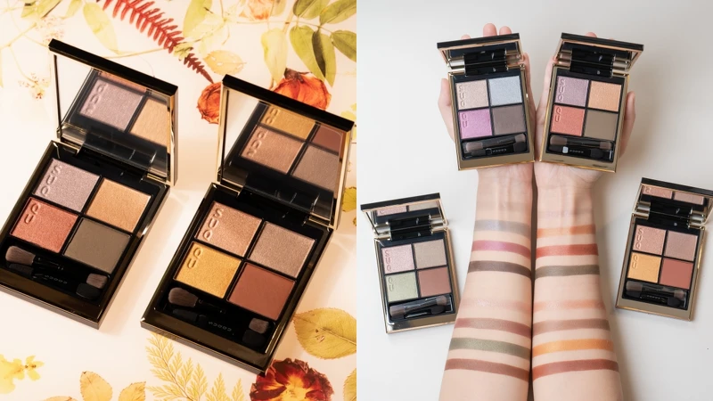 本季的晶采盈緻眼彩盤一共推出三款新色、一款限定色,色系的發想來源及是希望大家能夠感受深秋的時期,放眼群山綻放斑斕光輝的氛圍。以細膩的質感與光燦、具層次的豐富色彩展現鮮麗的秋日美景。