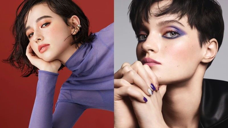 11 宵紫 YOIYUKARI:鮮麗的紫色調作為單色使用能展現出潮流的時尚感,與灰色疊擦讓整體色調更深邃而沉穩,多彩的珠光則增添性感的氣息。