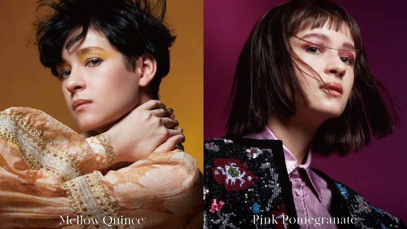 以魅惑的果實為靈感,運用黃色和石榴粉色調作為兩個主色,延伸出眼影、唇彩等彩妝,創造有趣的夏末初秋妝容。