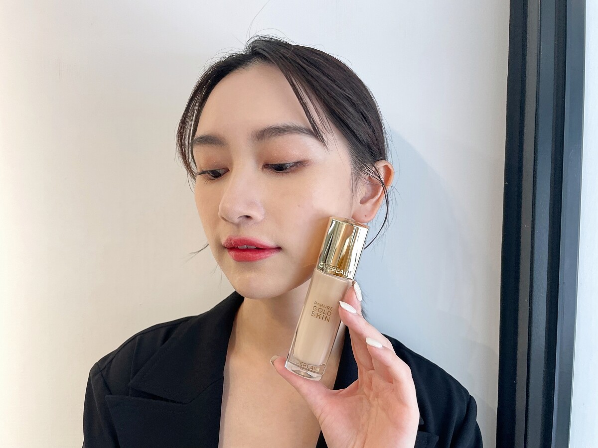 其中,暱稱金光瓶的24K純金光透精華粉底是光澤妝效,是亞洲限定販售的品項,嬌蘭彩妝創意總監也提到這次的金光瓶配方是專為乾肌量身打造;而暱稱金霧瓶的24K純金持久無瑕粉底,則在配方中使用不轉印科技,結合24K純金光和白牡丹萃取,打造不沾染的霧中帶光持久妝效。