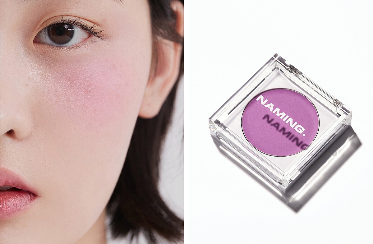 腮紅同樣也是帶紫色調,選擇的是韓國開架彩妝品牌NAMING的霜狀腮紅,霜狀質地具高延展性好暈染,不擔心下手過重,是顯白的薰衣草紫色頰彩。