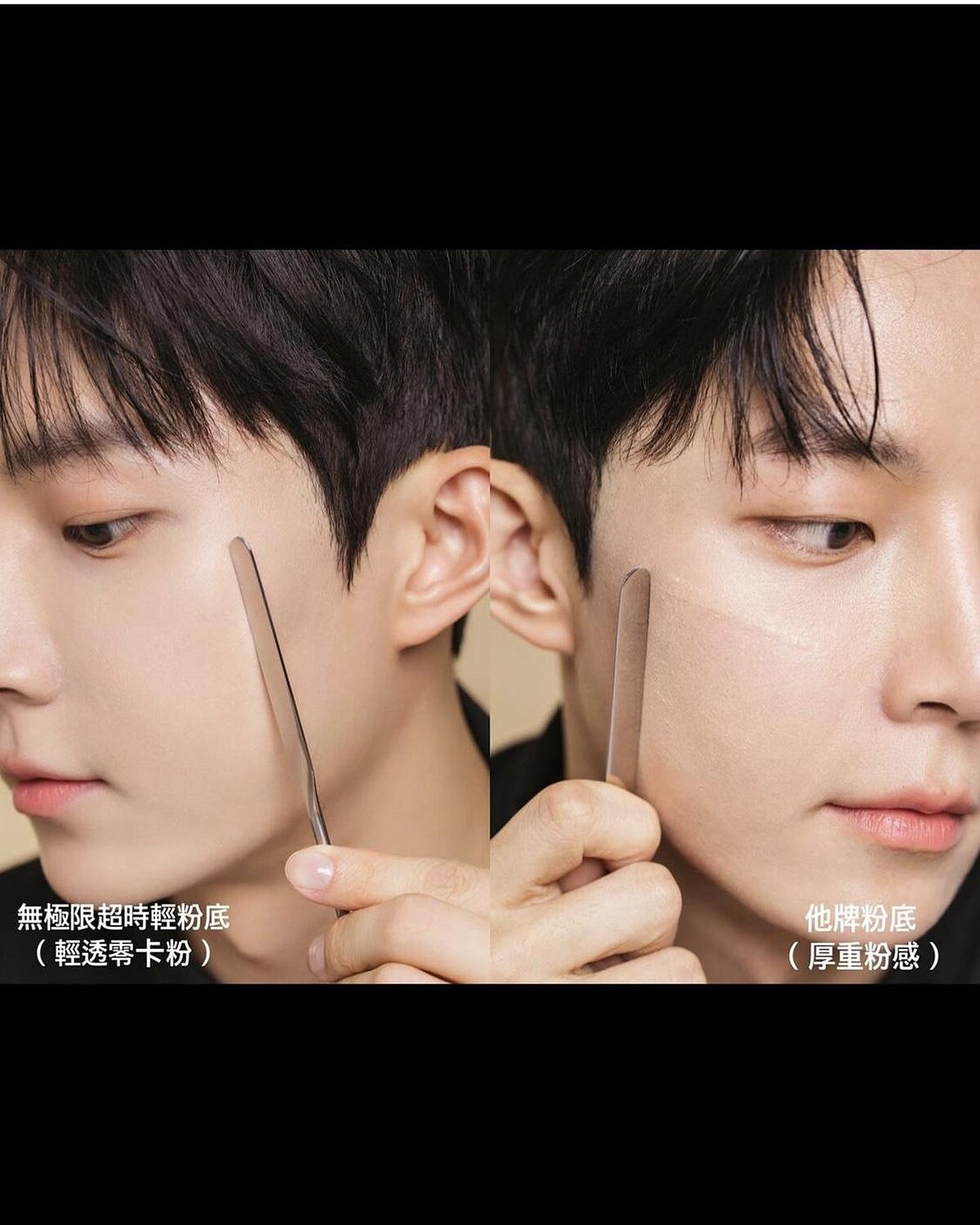 實測2.輕盈服貼:植村秀無極限超時輕粉底到底有多輕盈、多服貼呢?用刮棒比較就知道!和它牌粉底相比,用刮棒輕輕一刮,它牌粉底會出現明顯粉痕與膚色落差,但植村秀無極限粉底依然完美無痕!超服貼!