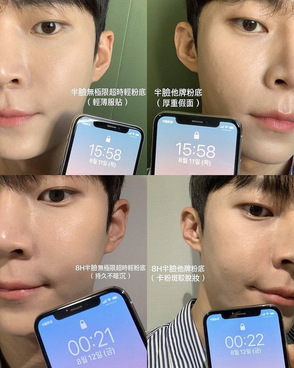 實測3.持久不脫妝:植村秀無極限底妝最引以為傲的持久力,經得起時間考驗!實測從下午出門直到半夜,經過8小時底妝不積線、不結塊、不脫妝,超持久還不泛油光!臉蛋摸起來不乾不緊繃,不愧是底妝之神!即使外出一整天,持妝能力也很好