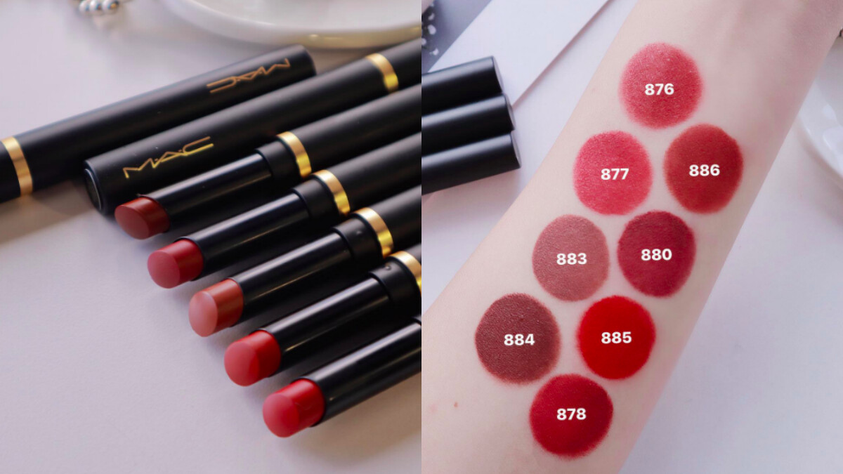 M編力推主打的8款色號:微醺魅惑感香料熱紅酒#876,蠟黃救星百搭款撩人八角紅 #886、嗆辣女辣椒轟炸機 #877、甜系girl變身跩女莓果色童話 #880、誘人犯罪大姐姐焦糖情人夢# 883、火紅到心狂野肉桂南瓜派 #885、暗黑系沉穩一姐流心黑巧克 #884、狂甜放肆整夜的伯爵甜茶酒 #878,美到讓人想包色!超級誘人顏色一抹膚色顯白搶眼,潤澤度畫上皮膚瞬間都感受得到,零廢色收一支真心不夠用,畢竟年末即將派對一波波,搭配各種場合原地變身人間擒男高手,每天用盡不同方式壞到最高點靠M·A·C細管絲柔粉霧奢緞唇膏狠夠!