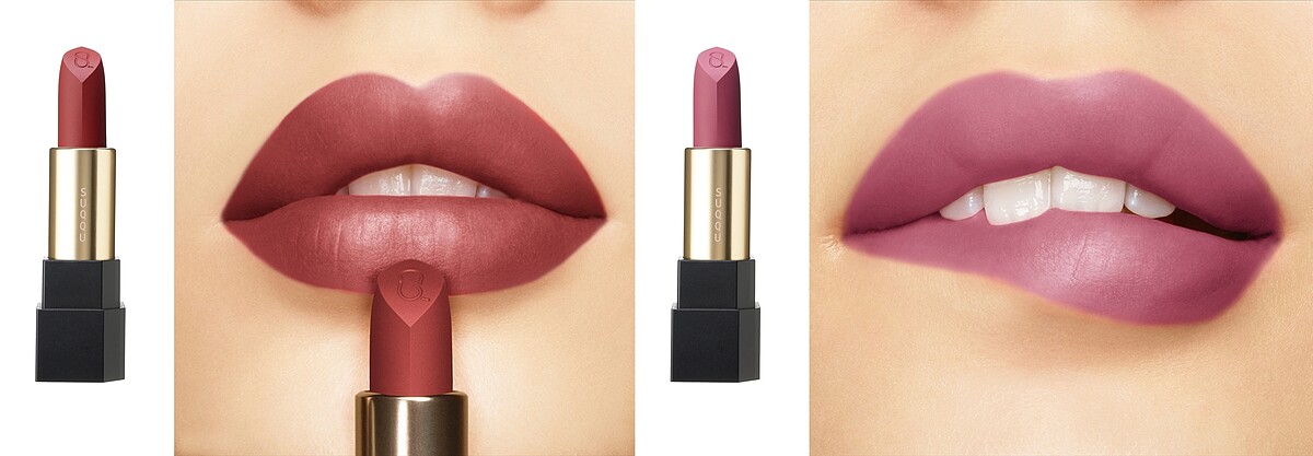 兩色分別為113宵染,是深邃美的血紅色調,上唇立刻就能擁有優雅的氣息;114星彩則是帶有淡淡紫色的粉紅色調,女人味、潮流時尚感兼具。