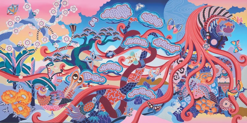 傳統工藝一直是 Oribe 品牌的重要元素,今年他們邀請日本現代藝術家京森康平,共同推出聯名節日限定禮盒。受 Oribe 「女神(Goddess)」品牌標誌所啟發,京森康平創造了「仙境女神(Goddess of Paradise)」,把日本的傳統動植物圖案融入到花園當中,女神的秀髮就像瀑布般一樣飄揚。每款色彩繽紛的禮盒和包裝都使用了不同的繪畫元素,讓這次的節日限量系列更顯獨特。
