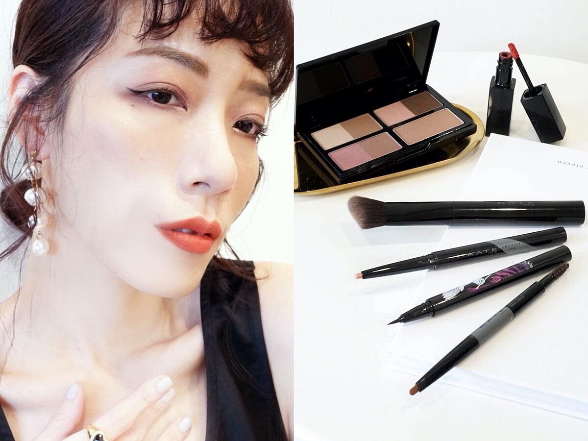 M編密技:都會個性眉搭配怪獸級持色絨霧唇釉#M04魅影朱月、3D造型柔霧彩盤BR-1 暖影、魅眼持色眼線液筆BR-2 焦糖棕 ,完成韓系歐膩妝