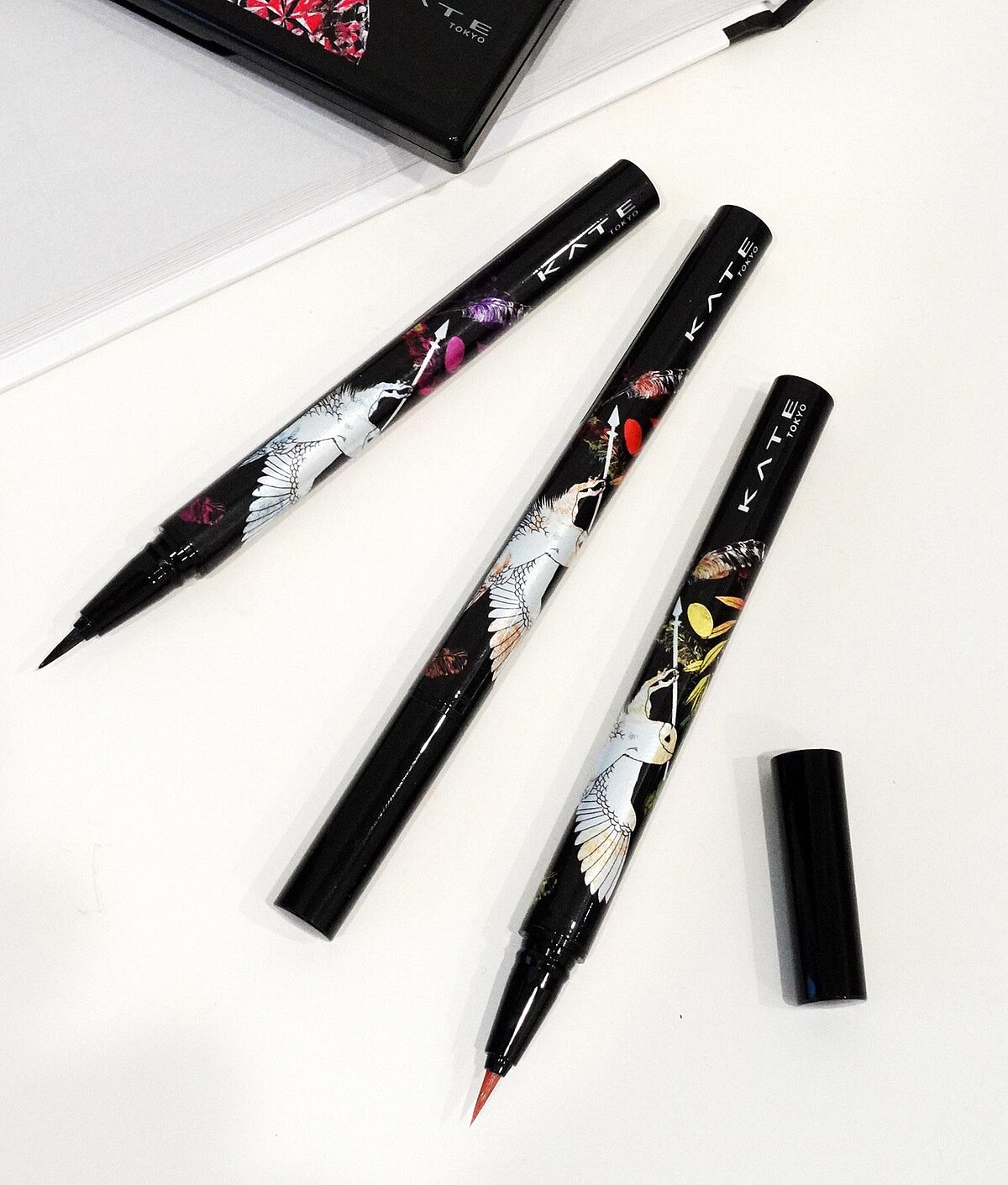 魅眼持色眼線液筆使用KATE獨家的橡膠筆觸配方和濃密液體配方,打造發色完美,一整天都不暈染的長效持久型眼線。