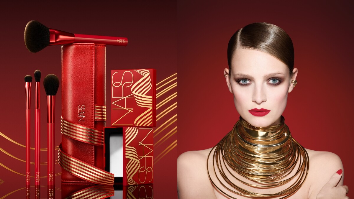 1/1將推出流金緞紅系列的NARS,將經典必收、愛用者最常用到鐵片君的小白餅裸光蜜粉餅搭配天鵝絨粉撲,推出限量版禮盒,流金緞紅系列以奢華金緞帶纏繞火辣紅色外殼,帶有性感霸氣的氛圍。除了小白餅之外,也推出流金緞紅專業刷具組,收入後台彩妝師欽點的四款刷具,包含圓形腮紅刷、火苗蜜粉刷、小型眼影刷、暈染眼影刷,搭配奢華喜氣包裝設計,帶出門旅遊、返鄉過年都超適合。