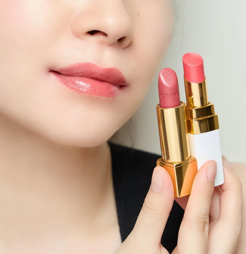 先用適合自己的「白管」香奈兒COCO持色潤唇膏打底後,再擦上「黑管」香奈兒超炫耀絲絨唇膏,經過疊加後的雙色唇、更顯豐潤光澤且持久顯色,呈現出另一種豐潤印象,濃艷色澤中透出水光,展現女人的自信優雅就是如此簡單。