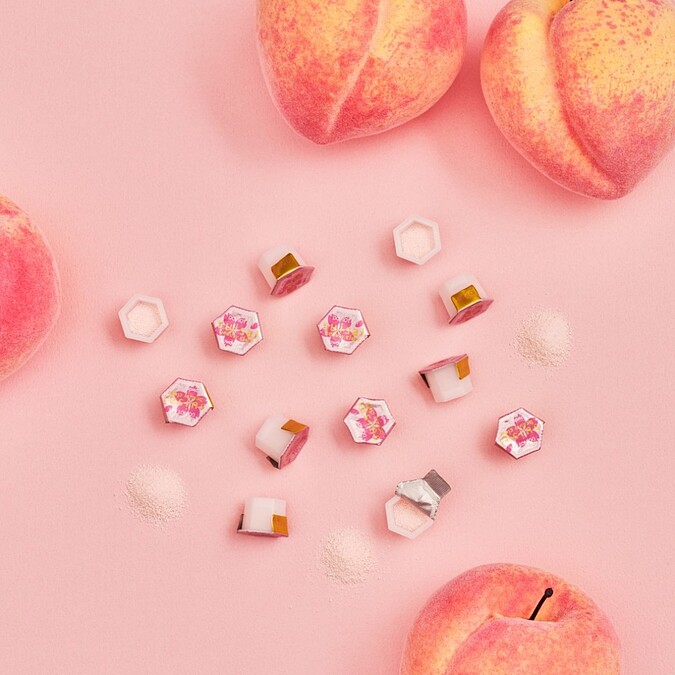 這次還與日本傳統西陣織工藝家「細尾家HOSOO」合作,粉色系外盒靈感來自染井吉野櫻,內管包裝印有 HOSOO 紡織花紋搭配金箔燙印,更顯精緻、淡雅。