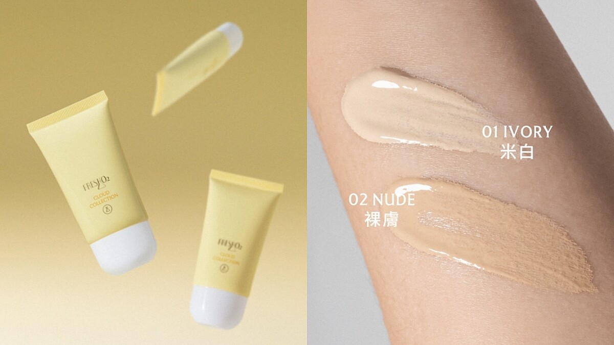 台灣開架品牌FreshO2 在2018年推出第一代雲朵系列,今年夏天針對台灣海島型氣候的悶熱潮濕天氣再度推出底妝新品。雲朵校色隔離CC乳主打清爽不黏膩,有1 Ivory米白與2 Nude裸膚兩個色號,擁有100%礦物防曬基底,以SPF30★★防曬係數為日常做好防護。薄透的質地和妝效,除了單用也能調和其他底妝做使用。
