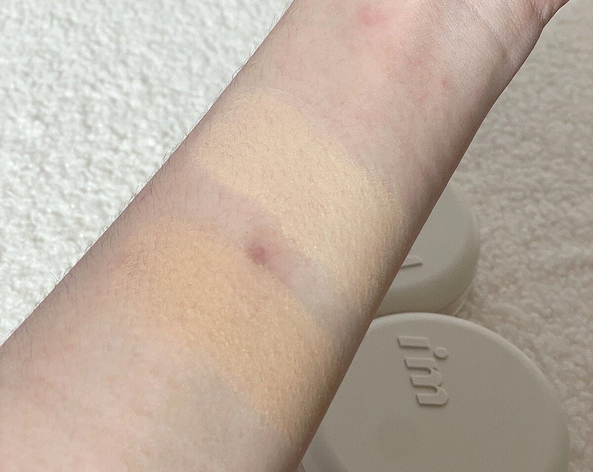 這罐裸妝乳添加了維他命C精華且採用採用煥顏粉體,貼膚不死白;在粉體中運用了獨特的爆水科技,質地水潤親膚,就像是精華乳一般,推開、推勻就完妝,喜歡清透妝感、有快速出門需求時非常適合。