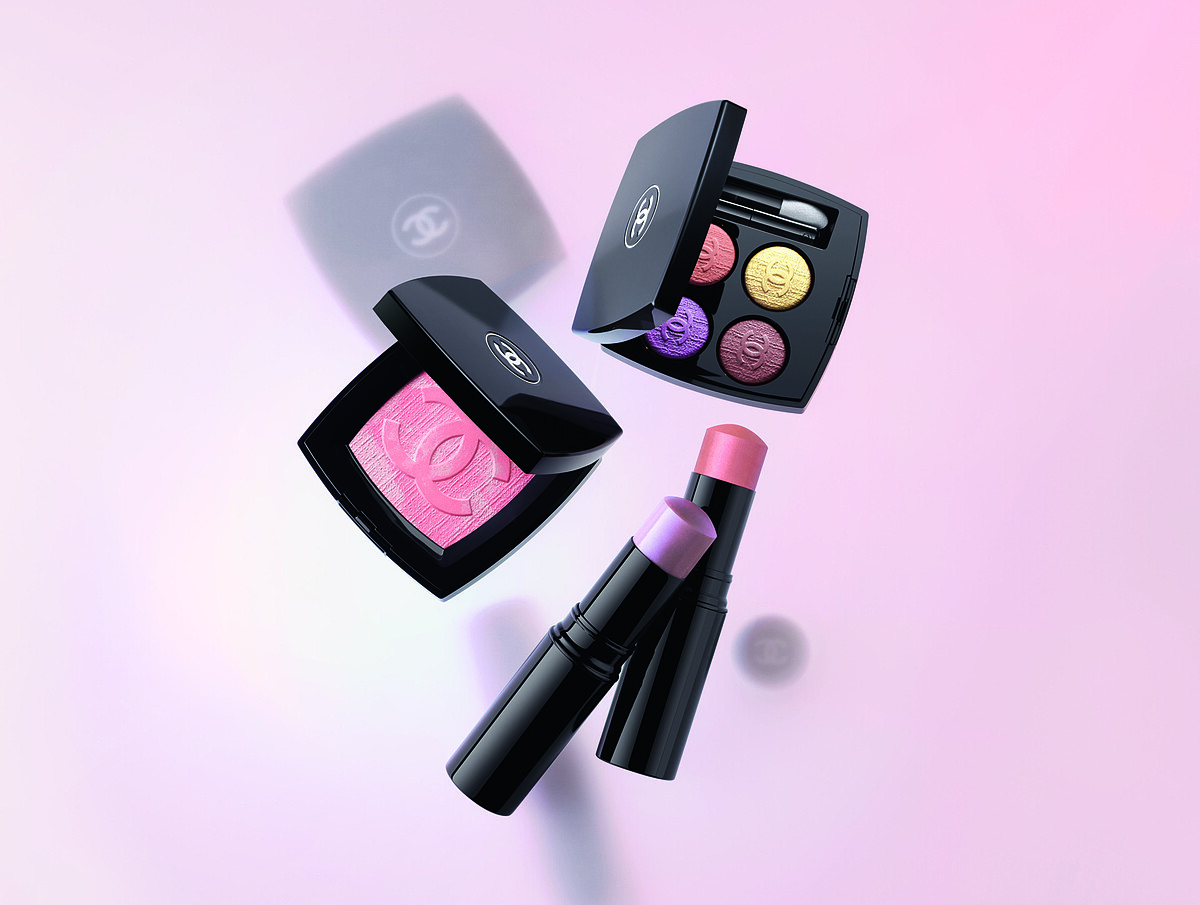 每到春夏季節香奈兒就會推出珍珠光感限量彩妝,今年春天以香奈兒女士鍾愛的春夏布料粉彩色斜紋軟呢為靈感,整體彩妝的色選以粉、紫色系為主,搭配清新活潑的妝效,打造粉嫩浪漫交織輕透感的仙氣妝容。其中包含限量的四色眼影、頰彩盤、超炫耀絲絨唇露,以及推出新色的水潤聚光棒、防水斜角眉筆和持色潤唇膏。