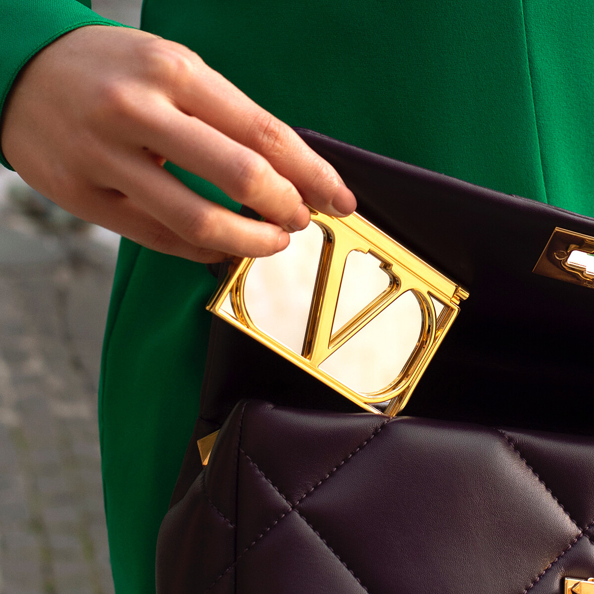 由創意總監Pierpaolo Piccioli親自設計,將高級訂製服裝設計與彩妝完美結合的精湛之作。鑲上金鏈的小型Clutch手拿包外盒造型,內含細緻定妝粉餅與迷你唇膏。