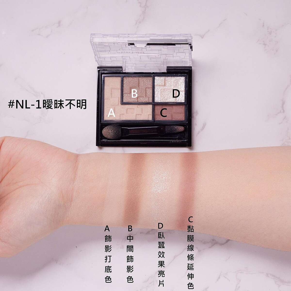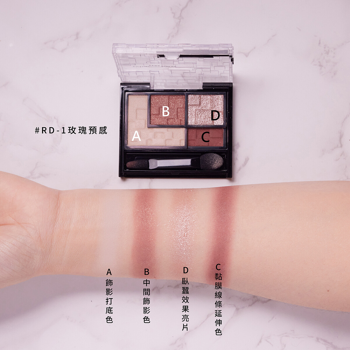 雖然六盤眼影色調都仙美,M 編私心大推這兩色:#NL-1曖昧不明、#RD-1玫瑰預感,完全零廢色,無論是日常大眼妝、還是個性眼瞼下至妝都很可以,搞定各種眼妝超大心